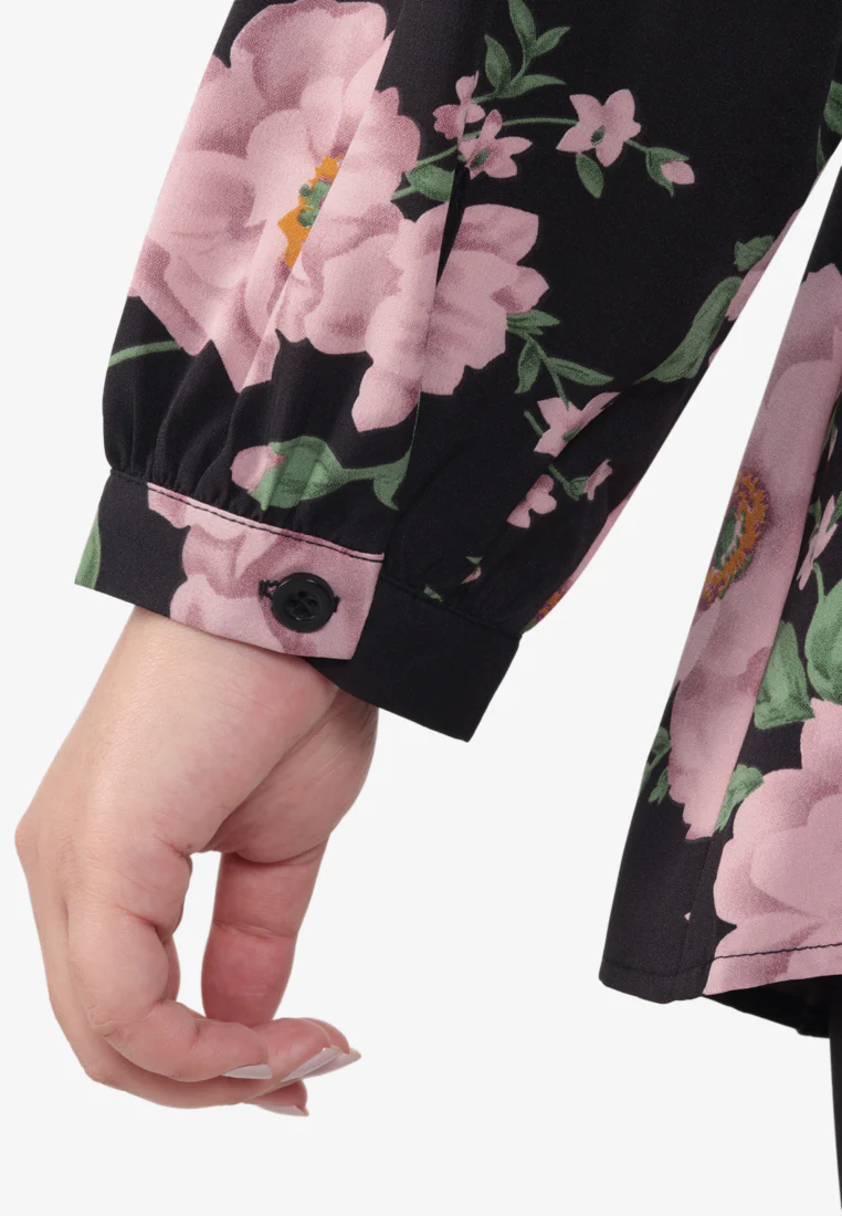 Wardani Raya Floral Prints Wrap Kurung Set - Black