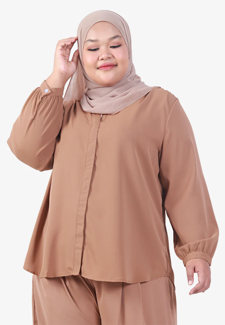 Manara Mandarin Collar Basic Blouse - Brown